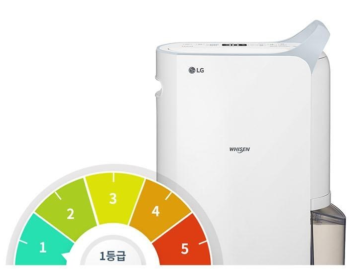 제습기도 은근히 전기세를 많이 먹는 제품이므로 효율 등급을 잘 따져서 구매하실 필요가 있습니다. LG 휘센 듀얼 인버터는 대용량이지만 에너지 효율 등급은 1등급이므로 제습기 전기세 걱정 없이 쾌적한 가정환경을 만들 수 있습니다.