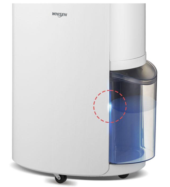 라이팅으로 물통 수위 상태를 확인할 수 있습니다. 투명한 물통에 물이 가득 차면 라이팅이 깜빡여 물통을 비울 시점을 알려줍니다.